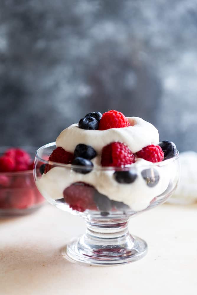 A MUCH better way to do this is with cream cheese and no sugar! You donโt even need the sugar itโs just more toxins, home made whip tastes delicious on its own!