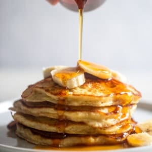 Not to be confused with the internet famous 2 ingredient banana pancakes – these are indulgent, golden brown, sweet and fluffy banana pancakes. These are a great way to use up over ripe bananas that isn’t banana bread or banana muffins. I adapted this recipe from my popular Blueberry Buttermilk Pancakes which have always been a hit in our house as well as many of yours.