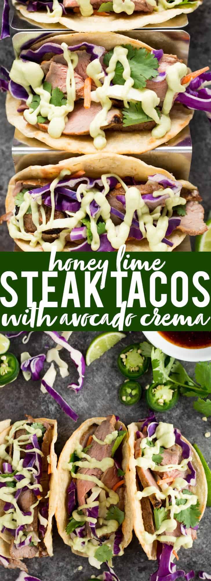 These Honey Lime Steak Tacos with Avocado Crema are the perfect combination of sweet, spicy and tangy – a flavor explosion!