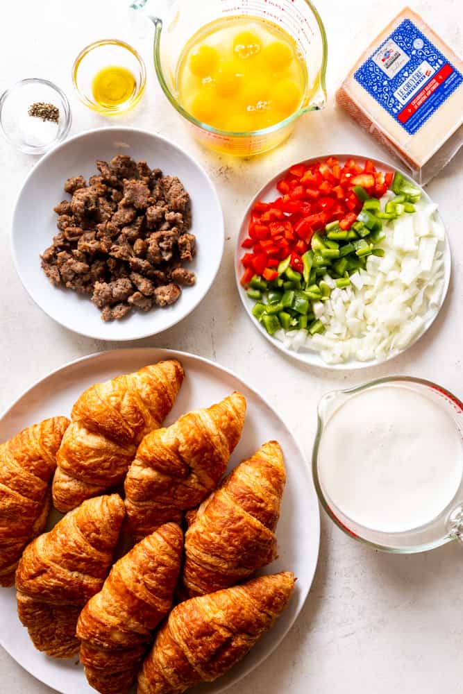 This make-ahead Overnight Croissant Breakfast Casserole is perfect for Christmas morning, Easter or Mother’s Day! Flaky croissants, savory sausage, and melty cheese make this delicious brunch as effortless as it is decadent.