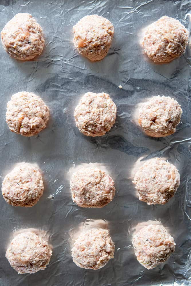 - Shape meatballs into golf ball sized balls – I use a medium cookie scoop for easy portioning. Arrange on the baking sheets, leaving about an inch of space between them. You will need to use two baking sheets to avoid over crowding.