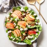 Make ahead - although components can be prepared ahead of time such as making the dressing and crumbling the cheese, I don't recommend assembling the salad until just before serving.Leftovers - this salad is best eaten right away, as the dressing will start to wilt the spinach, and the apples will turn brown. If you don't mind that, the salad can be kept in a sealed container in the fridge for about 1 day.