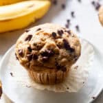 Evenly distribute the batter between the muffin cups. (I use an ice cream scoop for easy portioning). Sprinkle some mini chocolate chips on top of each muffin if you want. Muffin cups should be filled almost to the top.