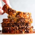 Pour the batter into the prepared bread pan. Sprinkle the remaining chocolate chips on top of the batter.