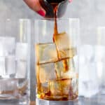 When ready to make a cup of cold brew, add equal parts cold brew concentrate and cold water over ice.