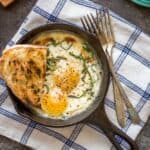These oven baked eggs make the perfect weekend breakfast or brunch. This sophisticated and impressive egg dish is perfect for a crowd, or for just one or two people.