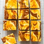 Pour half of the pumpkin mixture into the pan over the prepared crust. Dollop half of the cream cheese mixture in spoonfuls over the pumpkin mixture. Pour the rest of the pumpkin mixture over the top. Finish by pouring spoonfuls of the remaining cream cheese mixture in over the top of the pumpkin mixture.