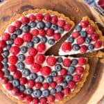 This Red, White and Blueberry Tart is a fresh berry tart perfect for 4th of July or any summer day! Fresh berries, a sweet creamy filling and a graham cracker crust make this simple and delicious tart a total winner!