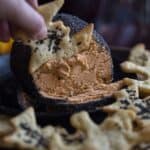 After cheese ball is chilled, cover a small plate with poppy seeds. Roll the cheese ball in the poppy seeds until it is totally coated. Keep cheese ball in fridge until ready to serve. Serve with my Cheesy Bat and Ghost Halloween Crackers!